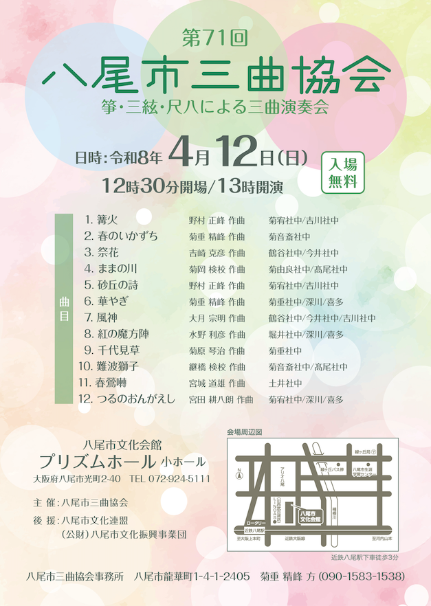 八尾プリズムホール 華やぎ(菊重精峰作曲)十七絃 千代見草(菊原琴治作曲)箏