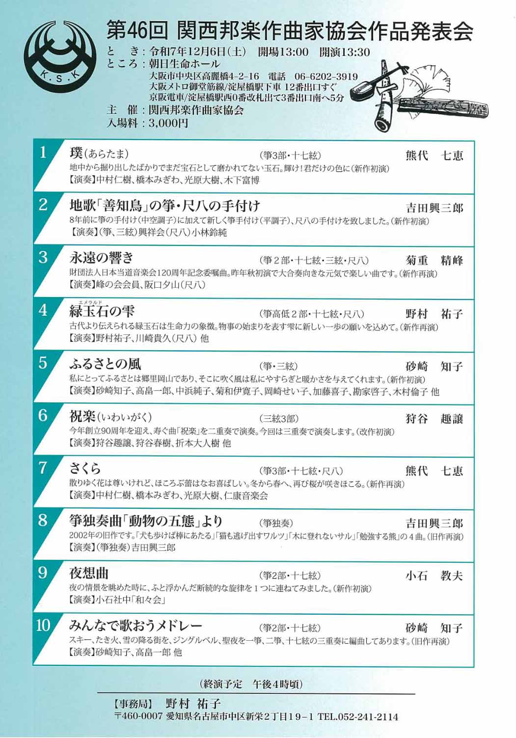 日 時 令和7年12月6日(土) 会 場 大阪朝日生命ホール 永遠の響き 三絃